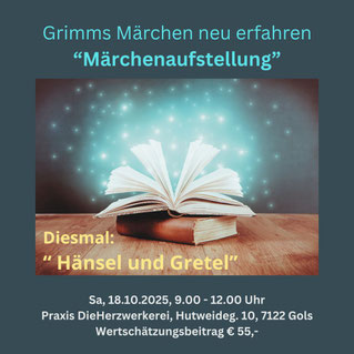 Mit Märchen können wir in unsere innere Welt eintauchen. Sie öffnen ein Tor zu unserer Seele, fördern Empathie und Mitgefühl auch gegenüber unseren verdrängten Anteilen und bringen Verborgenes zum Vorschein. Märchen sprechen z.B. Themen wie Vertrauen, Mut, Selbstbestimmung oder die Kraft der Gemeinschaft an. Märchenaufstellungen helfen, diese Themen greifbar zu machen. Bist du bereit, für eine Reise in die Welt der Märchen?